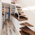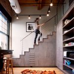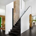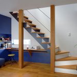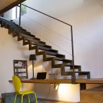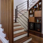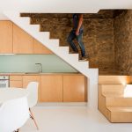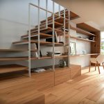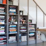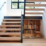 Takket være den smarte kombinasjonen av åpne hyller med andre typer strukturer, kan trappene lindres.