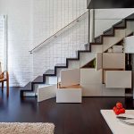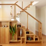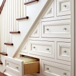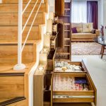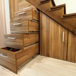 For å skape et ergonomisk rom under trappen, kan du installere en garderobe, hvis design består av skuffer. Disse elementene beveger seg fritt takket være rullestyr. Samtidig gjenstår ingen mekaniske skader på gulvet.