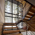 I sjeldne tilfeller er trappegarderoben i andre etasje dekorert med glassvegger. Denne metoden gjør det mulig å visuelt lette utseendet til strukturen med tunge trinn.