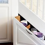 For å opprettholde orden i skapet og for å gjøre det lettere å finne ting, er fronten på skuffene signert. Hvis trappens bredde overstiger 0,6 m, vil to eller tre møbler med stor kapasitet passe under den. Hver av dem er delt inn i seksjoner ved hjelp av skuffer og hyller.