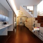 Å plassere et kokeområde under trappen har både fordeler og ulemper. I dette tilfellet er kjøkkenet pent og kompakt.