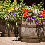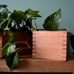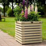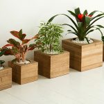 En gammel trekasse kan brukes som en utendørs blomsterpotte. Den skal males eller lakkeres. En DIY blomsterboks kan opprettes av trelister og et ark kryssfiner som fungerer som en base. Lamellene er festet til hverandre med selvskruende skruer som danner veggene til blomsterpotten. De plasseres vertikalt eller horisontalt.