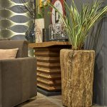 En interessant og ekstraordinær løsning vil være en gulvblomsterkrukke laget av tre. For arbeid trenger du en stubbe, tømmerstokk eller tykk kvist.Treemnet skal frigjøres fra kjernen. Den kan fjernes både i arbeidsstykkets tverrgående og langsgående posisjon. Resultatet er en høy eller lang pott. Det resulterende hullet rengjøres og poleres nøye. Den dekorative utformingen av en blomsterpotte laget med egne hender fra et tre kan være en fjernet bark. Det anbefales å understreke den naturlige skjønnheten med et lag lakk.