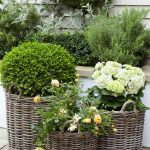 En original løsning for å lage en blomsterpotte på gaten med egne hender vil være bruken av metallkurver, som er dekket med et underlag. Det legges et lag med kokosfiber i bunnen, som ikke lar fuktighet passere gjennom og samtidig gir produktet et attraktivt utseende.
