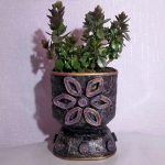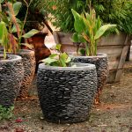 Nyttige råd! Slike blomsterpotter trenger ikke ekstra dekorasjon, siden de har et uberørt eksotisk utseende.