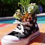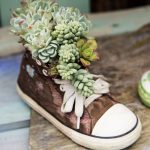 Blomsterpotter fra gamle sko ser originale ut. For dette er støvler, sko, galoshes, støvler egnet. For drenering blir det laget hull i sålen på produktene. Sko kan males med spraymaling for å få blomsterpottene til å se originale ut. Når du bruker lyse gummistøvler, kan de stå i sin opprinnelige form.