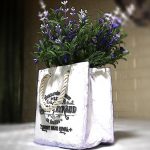 En blomsterpotte er også laget av en gammel beholder. For dette er en av dens laterale deler avskåret. Bunnen av beholderen kan festes til veggen for å skape en ansiktsformet gryte. Overflaten er belagt med lim og drysset med sand, og gjenskaper utseendet til en sandmann.
