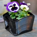 Det er enkelt å lage en blomsterpotte av en uvanlig form fra en vinylplate, som må forvarmes og deretter får den nødvendige konfigurasjonen. Det ferdige produktet kan være svart eller malt i lyse farger. En liten firkantet blomsterpotte er laget av gamle disketter, og limer kantene sammen.