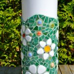 Du kan lage en original mosaikkblomsterpotte fra en vanlig blikkboks. For dette er beholderen belagt med en gipsløsning, på hvilken det er lagt et monteringsnett. Deretter utføres mosaikken direkte. For å gjøre dette kan du bruke småstein, fliser, glass eller skjell. Etter at gryten er tørket, skal alle tomrom maskeres med fugemasse.