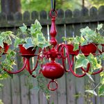 En hengende struktur for blomster fra en plastskål, som settes inn i en vertikal bøyle, vil se stilig og uvanlig ut. Gryten skal festes med Moment lim. En hengende pott kan opprettes fra en gammel fotball eller basketball ved å kutte den i to eller lage en annen uvanlig form. Hull for oppheng er laget på sidene på fire punkter, hvor tauet må settes inn.