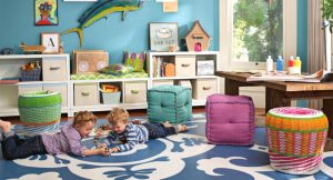Du kan også bruke spesielle møbler til barnehage for gutter og jenter. Dette er romslige ottomaner, sofaer, sofaer med hengslede lokk. Laget i en stilløsning, vil de lette oppgaven med å lagre forskjellige barns ting.