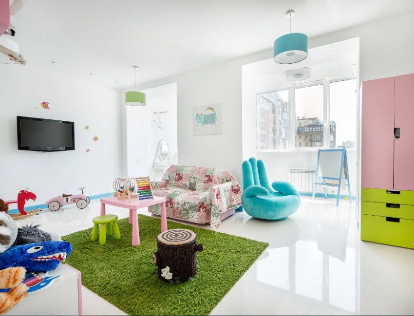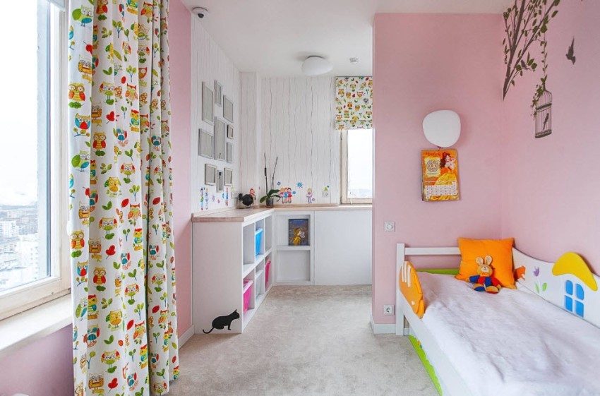 Den opprinnelige utformingen av rommet er ikke alltid tilfredsstillende og krever justering avhengig av barnets behov. Det vanligste alternativet er å feste en loggia, hvis det er en i rommet. Denne teknikken lar deg øke det brukbare området, samt mengden sollys som kommer inn i rommet. Den vedlagte loggia er ideell for å arrangere en arbeidsplass som er visuelt og funksjonelt skilt fra rekreasjonsområdet og aktive spill.