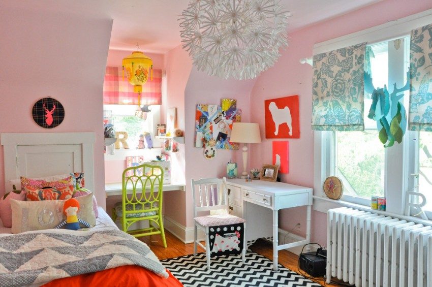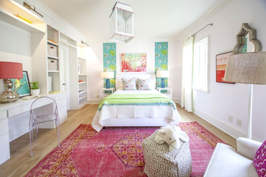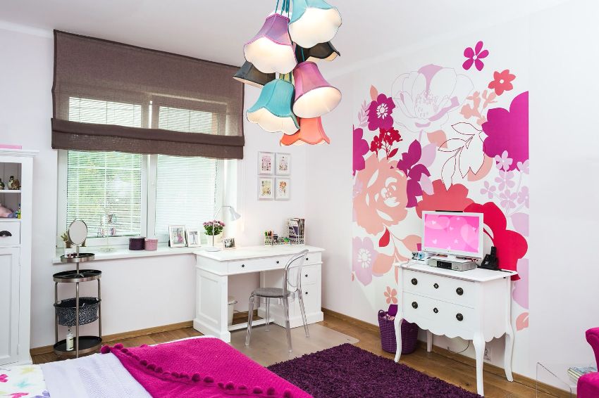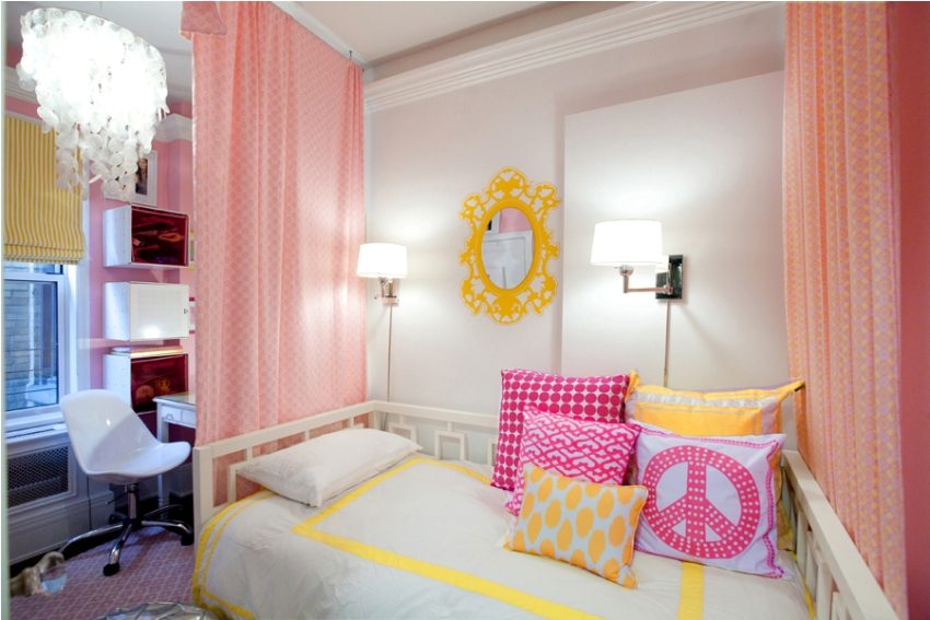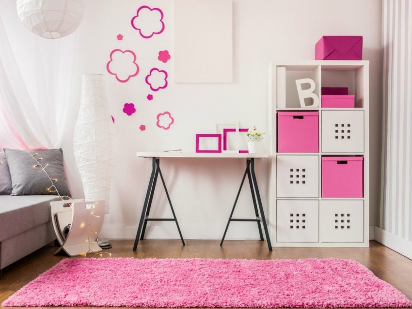 Til tross for at voksne lenge har vært lei stereotypier og fargeseparasjon avhengig av kjønn på barnet, liker mange jenter virkelig rosa, og de vil gjerne se det i utsmykningen på rommet sitt. For jenter som er 11 år og eldre, er surere varianter av dette fargevalget passende.