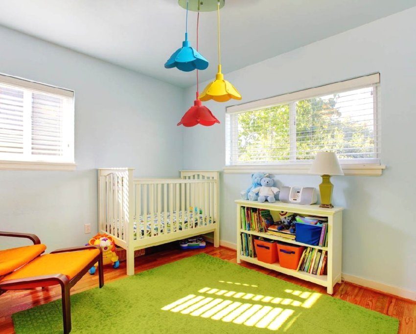 I tillegg til den sentrale taklysekronen på barnets rom, bør det være flere lyskilder - lampetter, en bordlampe, en gulvlampe, et nattlys, møbelbelysning osv. Det er viktig at ledningene gjøres av spesialister og er av riktig kvalitet.