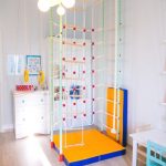 Det er ønskelig at høyden på hyllene tilsvarer barnets høyde, og han kan ta og sette tingene sine på plass uten hjelp fra foreldrene. For barn over 6 år kan du i tillegg utstyre en liten bærbar stige. Møbler utstyrt med mesaniner er perfekte for et lite barnerom.