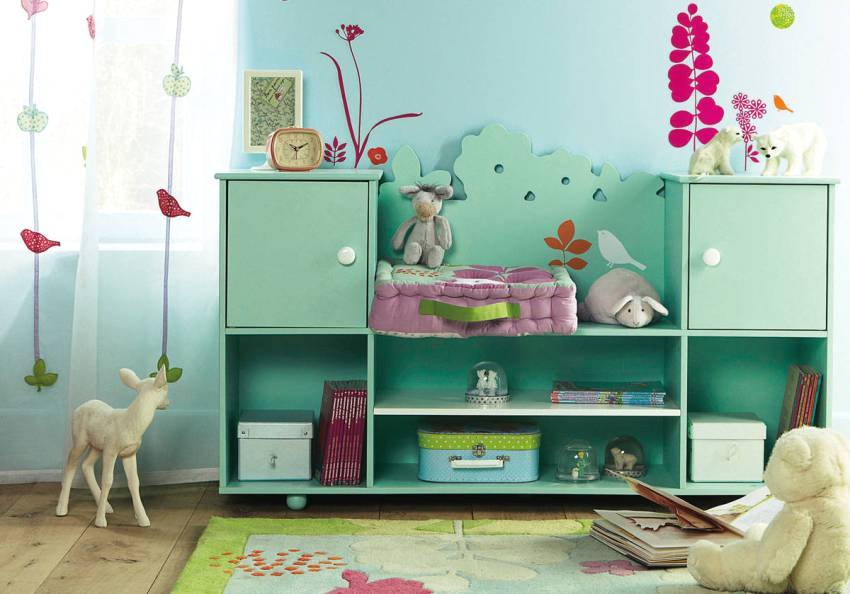 Møbler og dekorelementer som skal være i rommet til en jente 1-4 år: