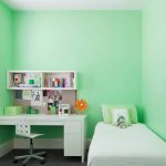 Vakre mynte nyanser er i stand til å livne opp et barns rom, som også har en stimulerende effekt på klasser og studier. Delikat myntefarge er i stand til å gi en avslappende og avslappende følelse, harmonisk kombinert med rike blå og mørkegrønne farger. Et interiør i slike toner vil definitivt appellere til en tenåringsjente.