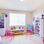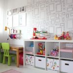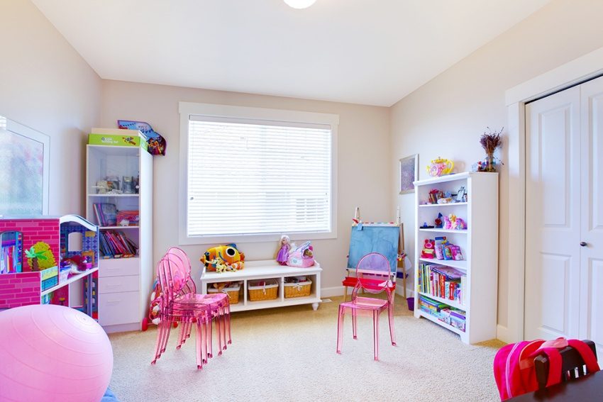 Hvis størrelsen på rommet tillater det, kan det reguleres, og skille sove- og lekeområdene. For dette kan en skillevegg, et stativ, en skjerm osv. Brukes. Det anbefales å plassere et lite bord og flere stoler i lekeområdet - for besøkende kjærester, eller dukker og plysj hare. I dette tilfellet er det bedre å foretrekke lyse plastmøbler slik at jenta kan flytte det til et eller annet sted etter eget ønske. Interaktive sett med leker i form av et kjøkken, et supermarked eller et sykehus, diversifiserer barnets fritid perfekt.