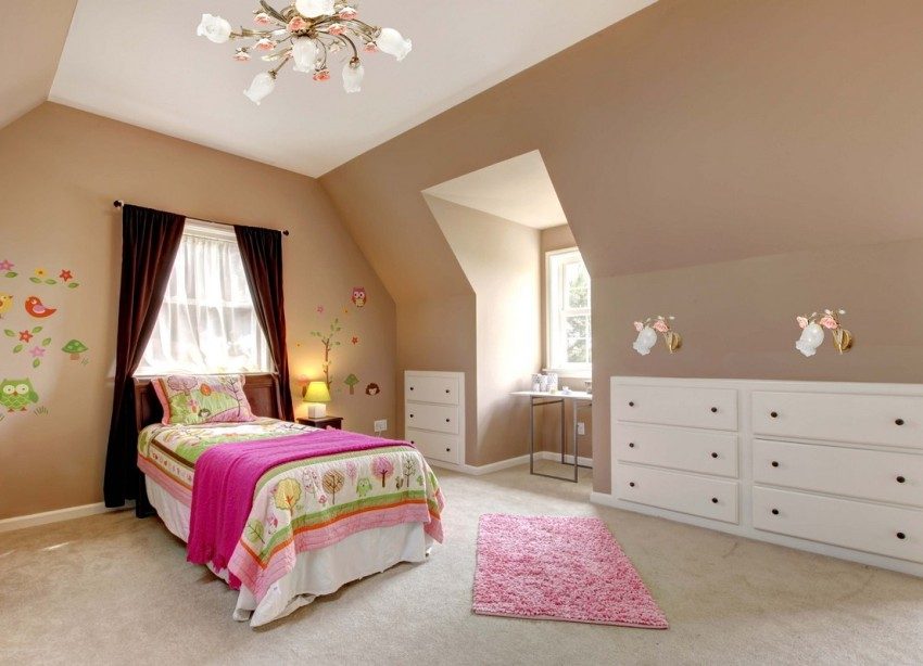 Dekorere vegger og tak i et jenterom: bilder av barnas reparasjon