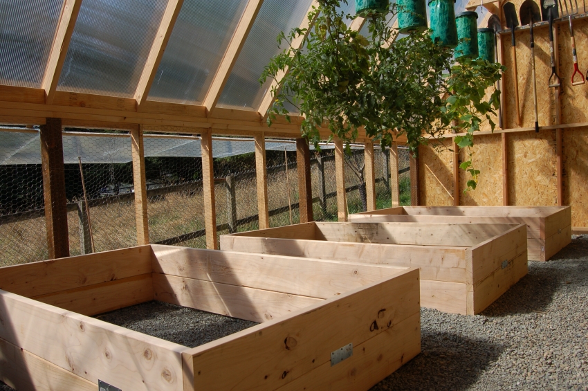 - muligheten for å danne et grunnlag for opprettelsen av et midlertidig drivhus for våren. Ved å installere høye sider som gjerder, kan du organisere et flerlagsseng inne i strukturen, som kan brukes som drivhus. For å gjøre dette er det nok å installere spesielle buer og strekke filmen. Resultatet er et pent drivhus;