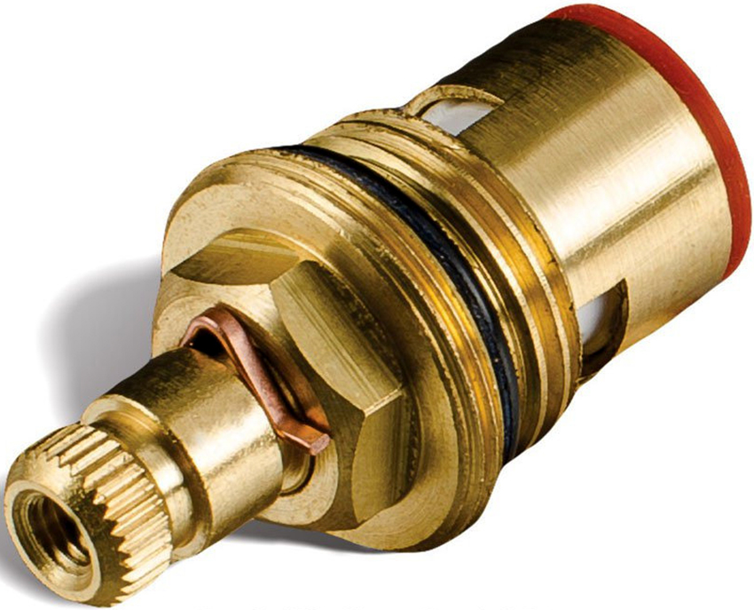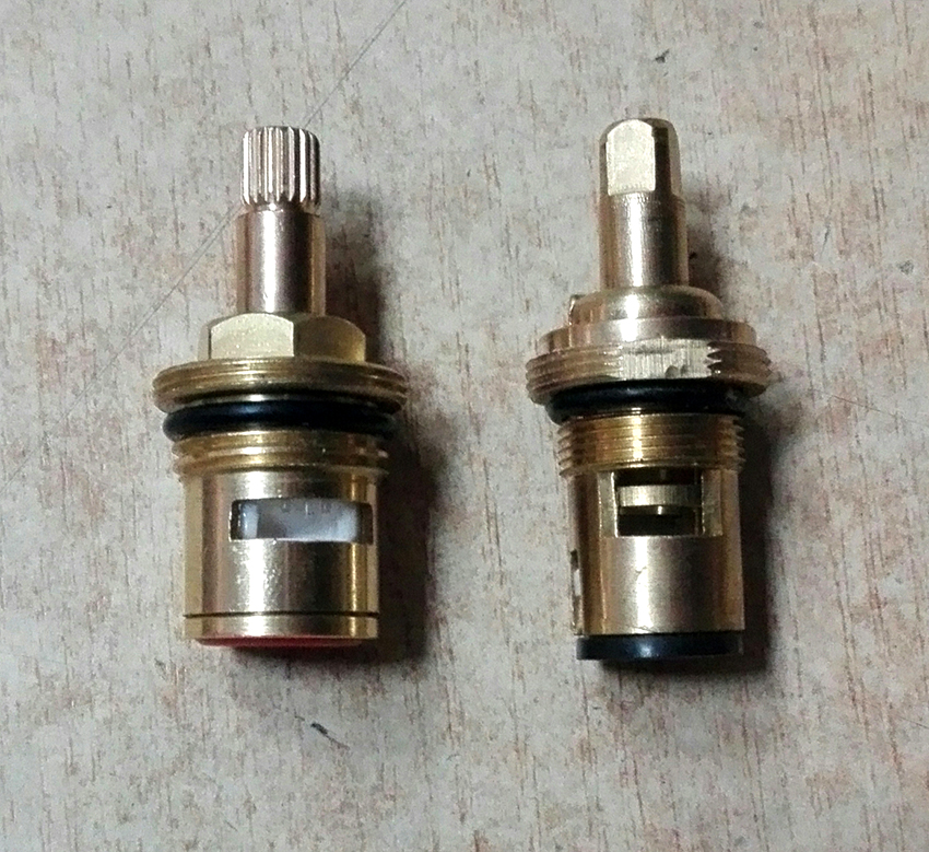 Enheten er preget av enkel design. Den er laget av keramikk og messing. Et slikt ventilhode er representert av to keramiske skiver med hull av samme form. En innsats er festet på stangen, og den andre er festet. Når du bytter på rotasjonsskiven, endres størrelsen på ventilens strømningsareal, som et resultat av at vannstrømmen reguleres. Enheten installeres i mikseren ved hjelp av standard tetninger og skiver.