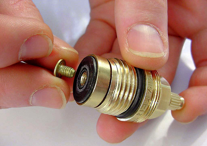 Ved sprekker, spon, fordypninger eller andre skader på setet i snekkegirkassen, må det sentrale elementet byttes helt ut. Hvis det er problemer med tettheten på kulen eller det keramiske ventilhodet, må det byttes ut med et nytt, siden reparasjon av innendørsenheten er umulig.