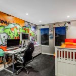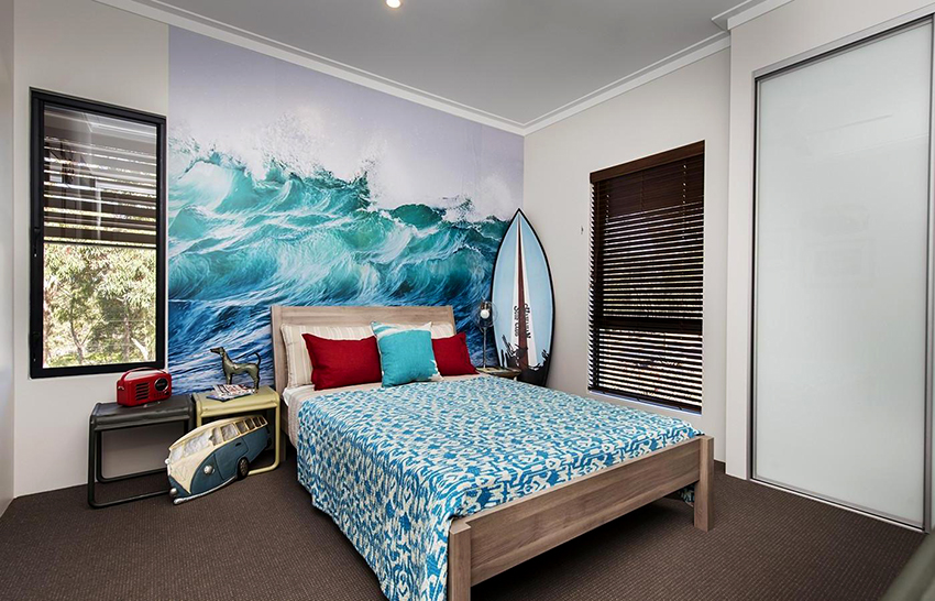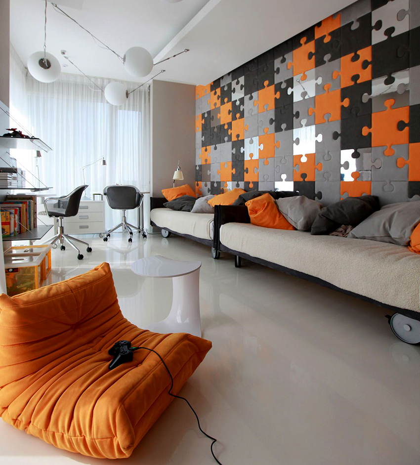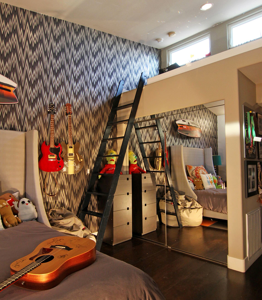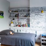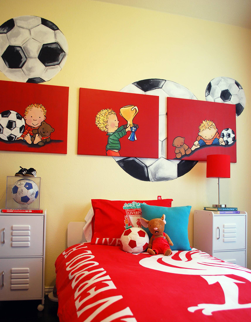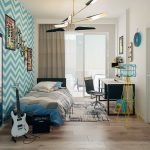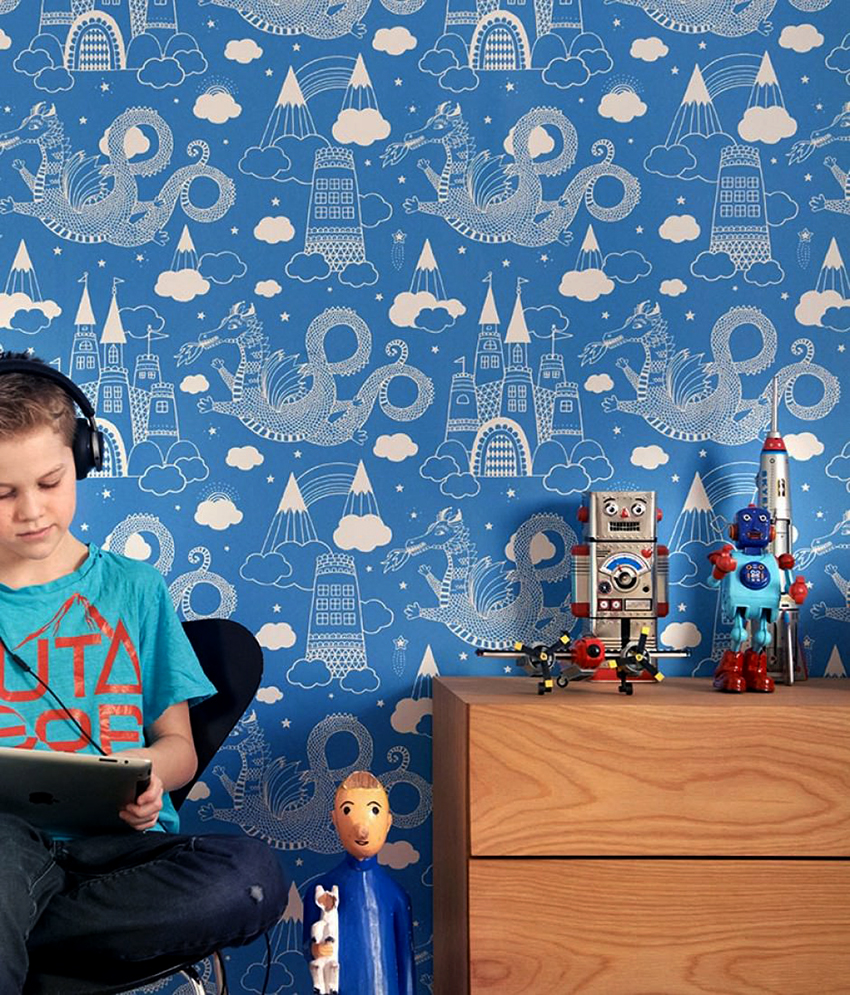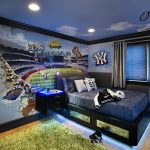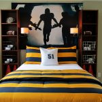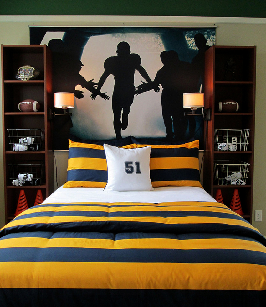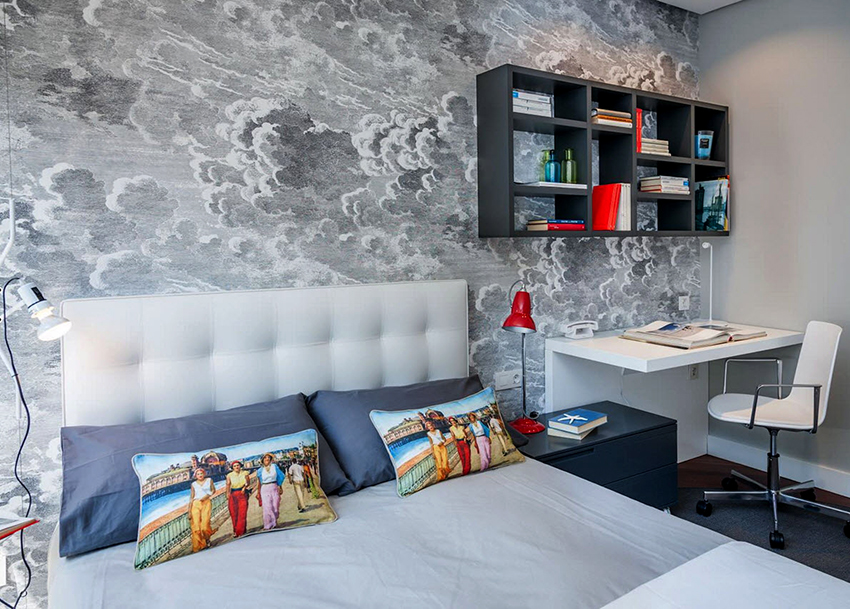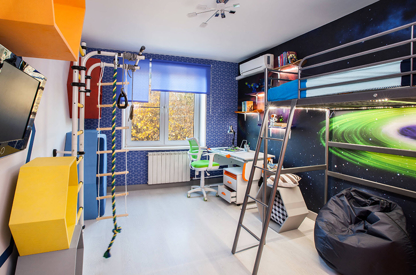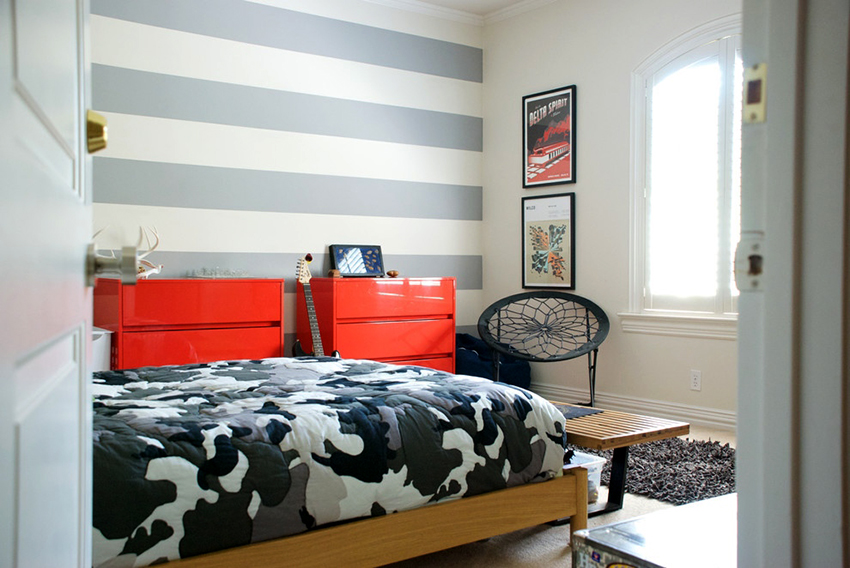 Bakgrunn for et tenåringsrom for en gutt er valgt med tegninger som samsvarer med barnets hobbyer. Typiske illustrasjoner kan brukes her på et av temaene, for eksempel sport, teknologi, musikk, biler, graffiti eller urbane komposisjoner.