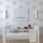 For en gutt på 1-2 år skal du ikke bruke lyst tapet. Skyer, stjerner, måne eller bjørn design kan kjøpes for en beroligende atmosfære.Også alternativer med planter og geometriske mønstre er passende, som det kan sees på bildet av barnas tapet for en gutt.