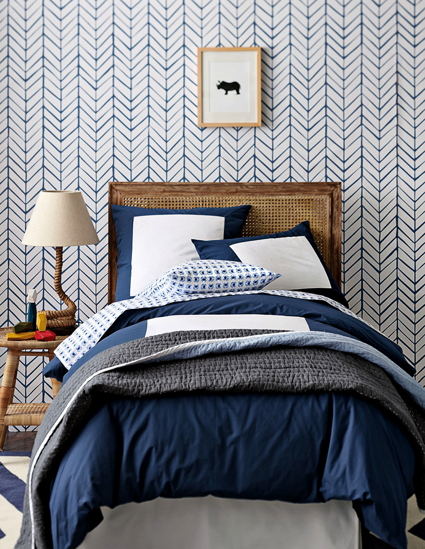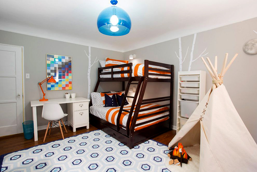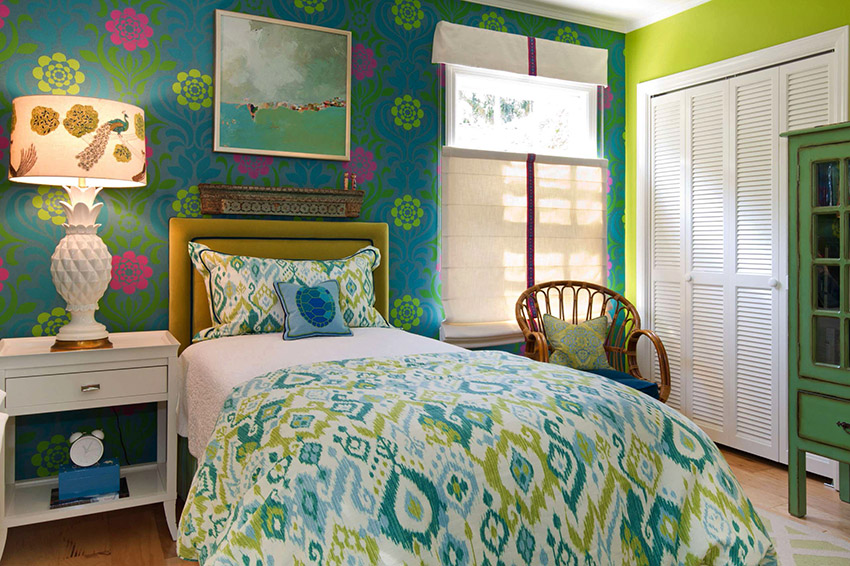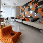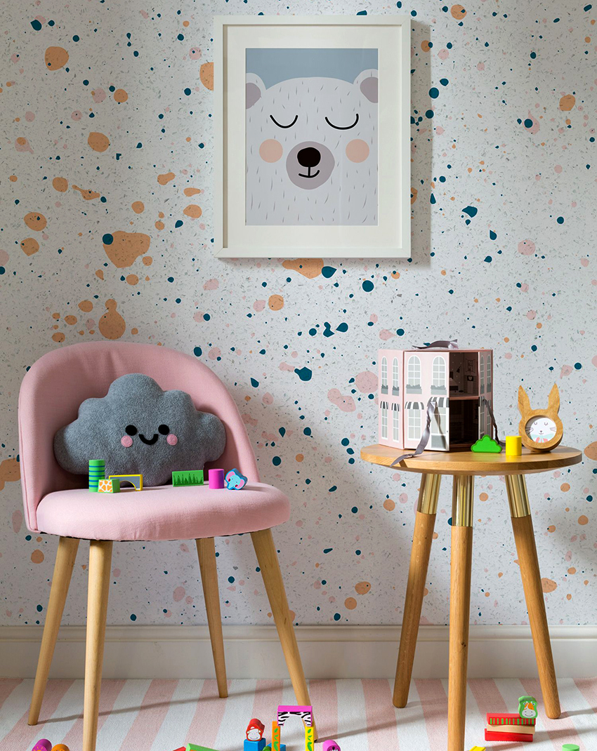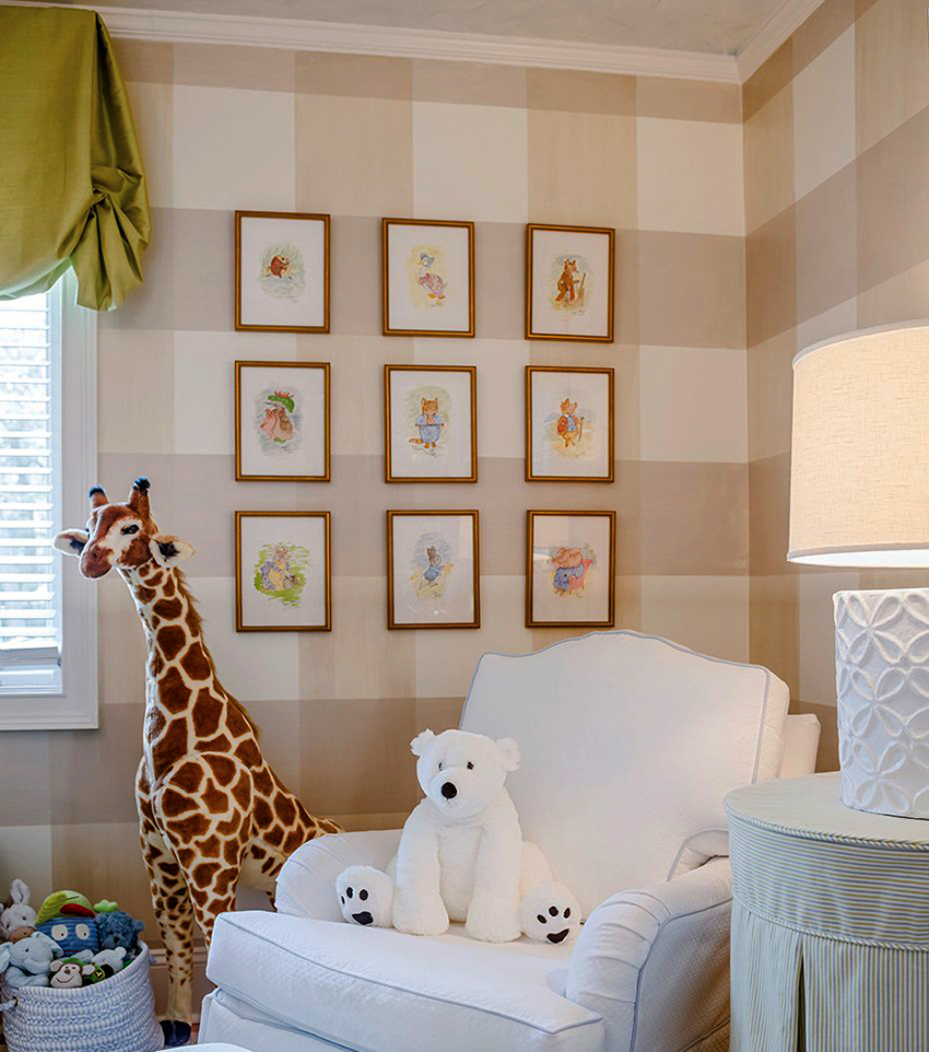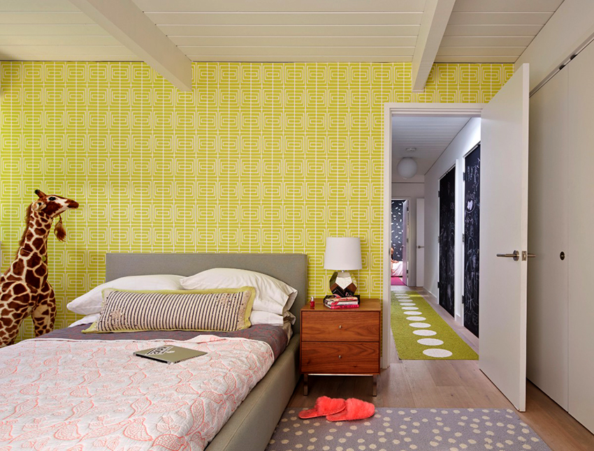 Geometriske temaer regnes som universelle, som passer for et barn i alle aldre og kjønn. Geometriske ornamenter kan presenteres i hvilket som helst fargevalg, noe som vil skape en viss atmosfære i rommet. Ruter og diamanter er et symbol på ordenlighet. Rette linjer representerer aktivitet og dynamikk. Bakgrunn med polka-prikker vil tilføre drømmer, romantikk og letthet til interiøret.