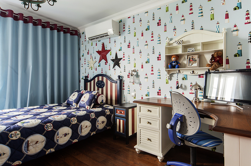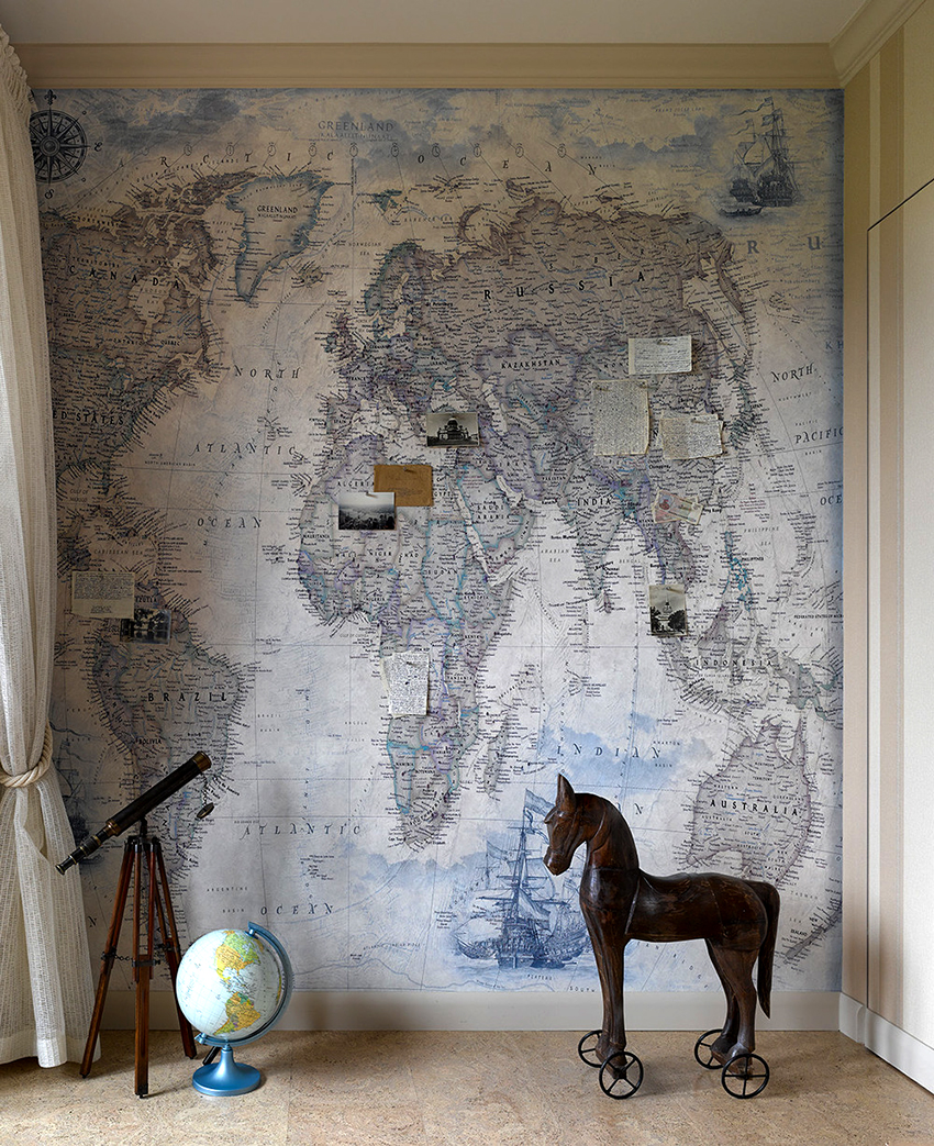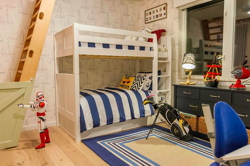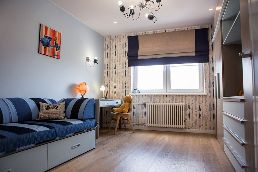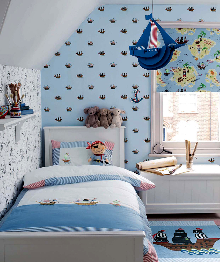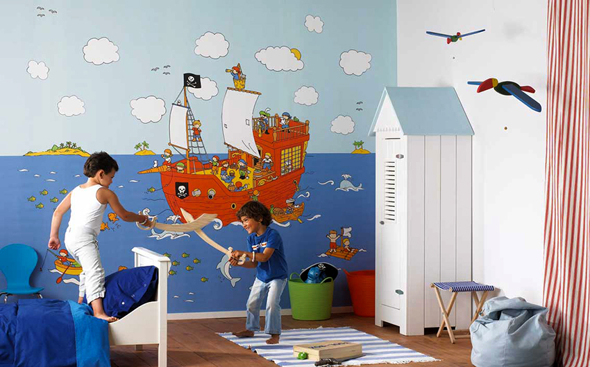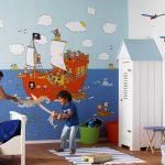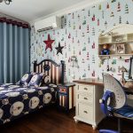 Det er egne temaer for gutter. Mange elsker nautisk design. På tapetet til gutterommet kan fisk, skip, strandlandskap, scener med sjøskatter skildres.