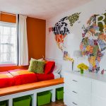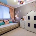 Hos et barn på 5-6 år øker aktiviteten kraftig. I løpet av denne perioden er det viktig å utvikle babyens kreative impulser, og skape behagelige forhold for hans selvrealisering. En god løsning er å lime over den øvre delen av veggen med dekorative varianter av etterbehandlingsmaterialer, og det er bedre å dekorere den nedre delen med papir tapet i en enkelt farge, som kan brukes til maling.