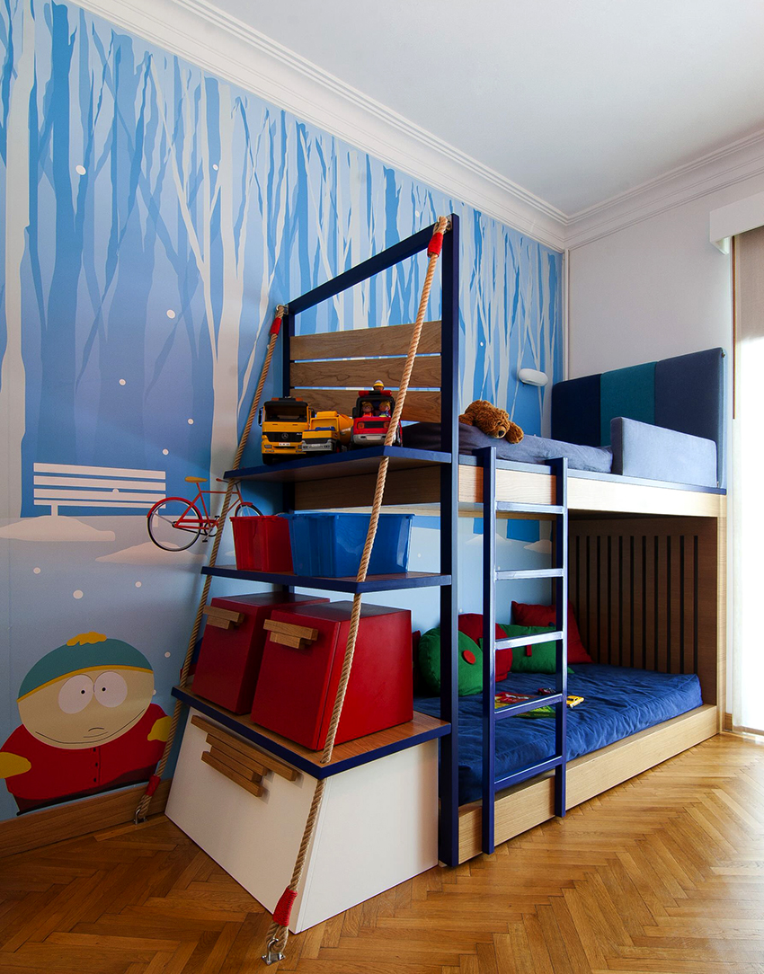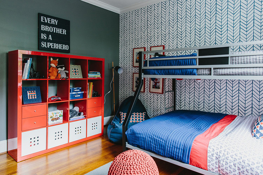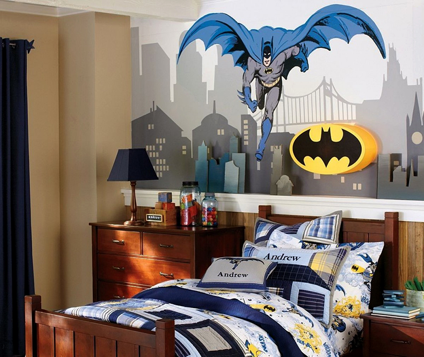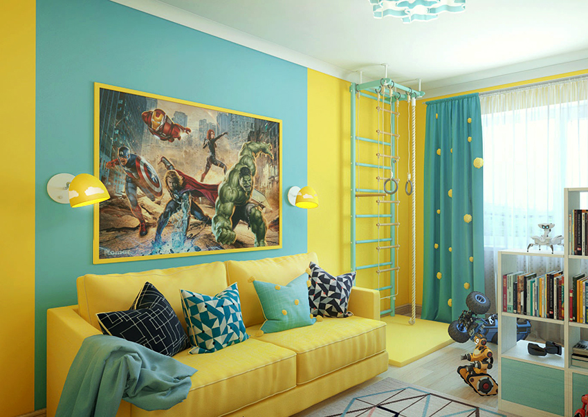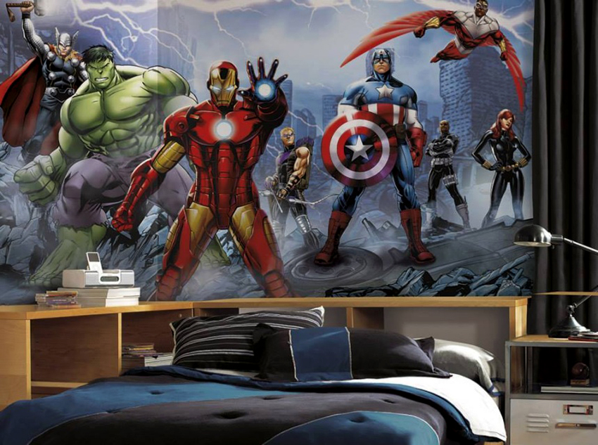Hver gutt har en favoritt superhelt. I rommet kan du feste et fototapet med bildet hans. En slik beslutning kan føre gutten til en ny begynnelse eller påvirke dannelsen av noen karaktertrekk. Populære er veggmalerier i barnehagen for en gutt med Spider-Man, Batman, Superman. Lyse lerreter skal overlappe med dekorative elementer i interiøret.