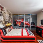 For et barn over 3 år kan du velge rike og muntre lerret. Gutter elsker biler mest. Et passende alternativ vil være fotomalerier med bilder av tegn fra tegneserien "Cars". Du kan komplettere det generelle konseptet med rommet med temamøbler. Det kan være en seng i form av en bil, skip eller fly.