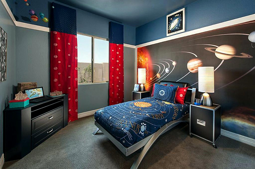 Romtemaet er ikke mindre relevant.Bakgrunnssamlinger inneholder realistiske eller tegnede scener med konstellasjoner, planeter, romskip. Bakgrunn med stjerner er et allsidig alternativ som passer både til en gutt og en jente. Guttene vil også glede seg over produktene som viser biler og sportsartikler.