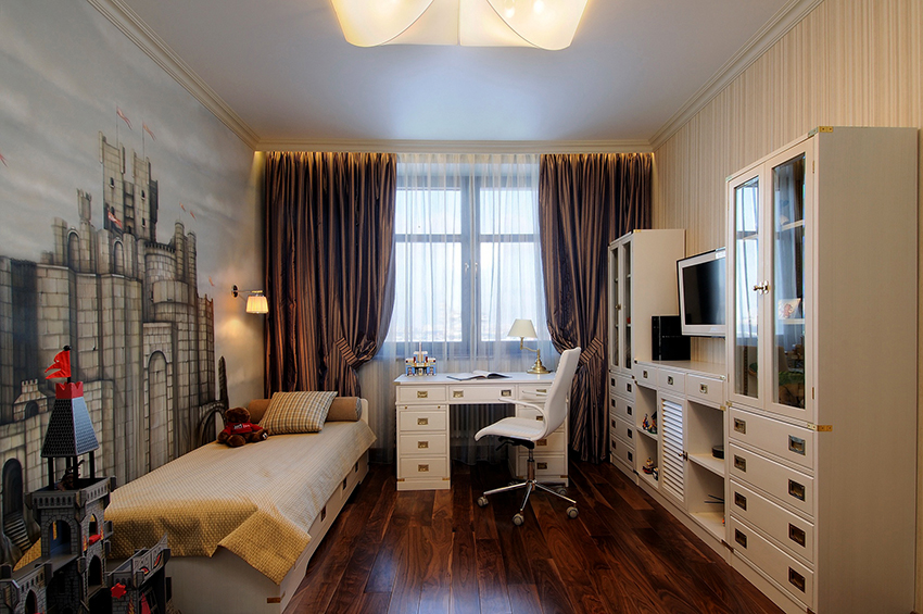 Et barns rom over 9 år bør utformes ut fra kjønn og personlige preferanser. I løpet av denne perioden blir barn veldig konservative og vil ikke la noe endres på territoriet de neste årene. Dette bør tas i betraktning når du velger en veggdekorasjon til et barnerom. Tegningen skal se estetisk og stilig ut i noen tid.