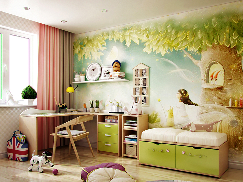 Nyttige råd! Et godt alternativ for å dekorere et barnerom vil være bakgrunnsbilder, takket være at du kan skape en fantastisk atmosfære i rommet.