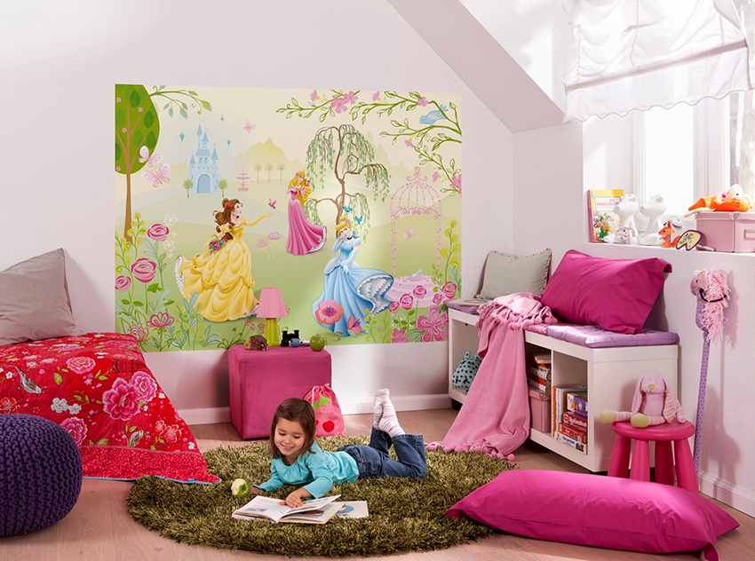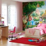 Temaet med favoritt tegneserier er ikke mindre populært. Det er mange alternativer for Disney tapet som du kan bruke til å lime over alle vegger eller lage en lys aksent i et rom. Jenter vil elske produkter med prinsesser, mens gutter vil elske produkter med pirater, roboter og superhelter. Du kan feste tapetbiler, lerret med scener fra tegneseriene "Madagaskar", "Nemo", "Shrek" og andre på barnerommet.