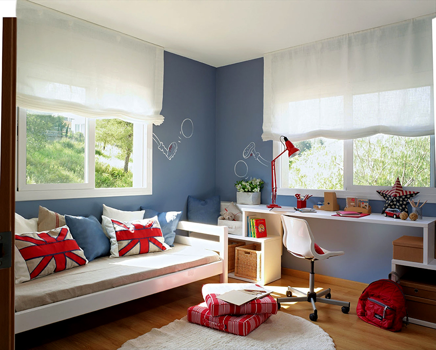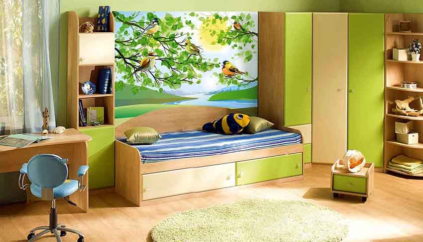 Fargepaletten påvirker barnets psykologiske tilstand. Ifølge psykologer har den gule fargen den mest gunstige effekten, noe som vekker ønsket om studier, selvrealisering, nye oppdagelser og prestasjoner, og gir munterhet i rommet. Fargen grønn roer og stimulerer ønsket om å utvikle seg.