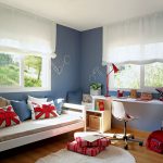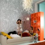 I et moderne barnerom kan du sone plassen ved å bruke en kombinasjon av tapet i forskjellige nyanser. Hjørnet for aktive spill kan dekoreres i en lys, fargerik design med syrin, rød, grønn og oransje farger. I arbeidsområdet vil rolige mynte- eller lavendeltoner se mer passende ut, noe som bidrar til konsentrasjon. Det er bedre å lime over et sted å sove med tapet av hvitt, blått, beige, krem og andre rolige og myke nyanser.