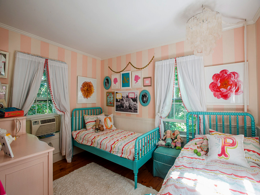 Nyttige råd! På barnerom bør du ikke lime tapet med et stort mønster, noe som visuelt reduserer det indre rommet og skaper ubehag i rommet.