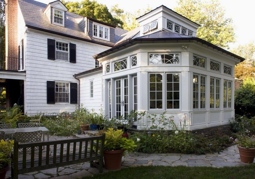 Lukkede verandaer festet til huset: fotoideer for implementering