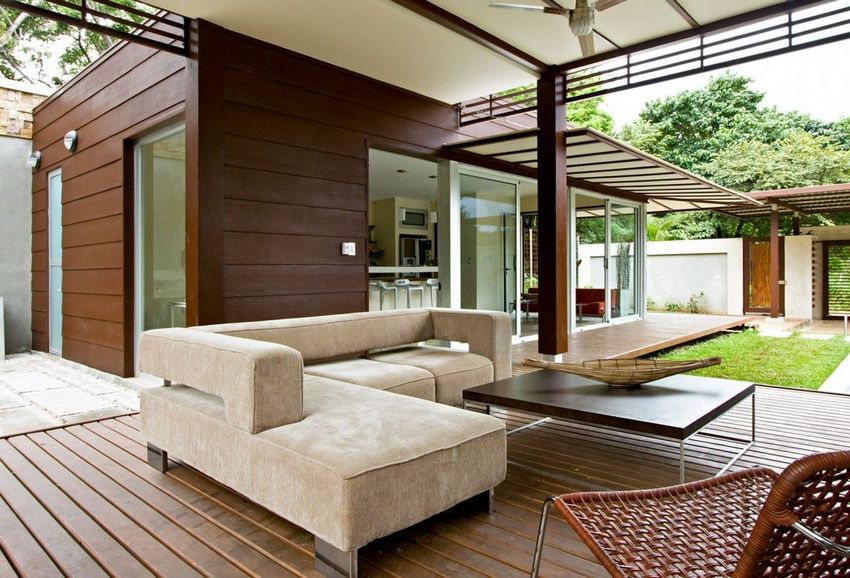 Åpen veranda festet til huset. Bilder av unike løsninger