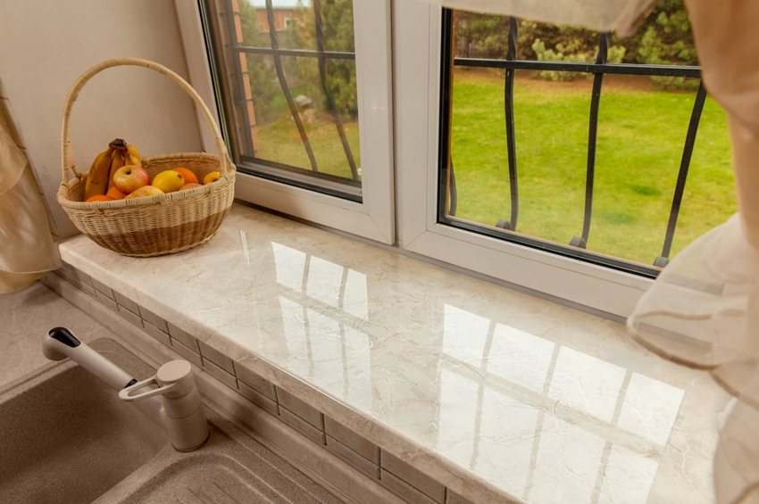 Important! Un rebord de fenêtre en plastique peut se déformer lorsqu'il est exposé à des températures élevées, de sorte qu'une bouilloire ou une casserole chaude ne doit pas être placée sur la surface.