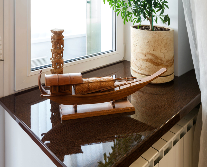 Avant d'installer un rebord de fenêtre sur une fenêtre en plastique, vous devez sélectionner le type et la taille du produit. L'option la plus économique est une surface recouverte d'un film PVC. Cependant, un tel rebord de fenêtre ne tolère pas les températures extrêmes, absorbe rapidement la poussière et la saleté, ce qui entraîne la perte de son aspect attrayant d'origine.