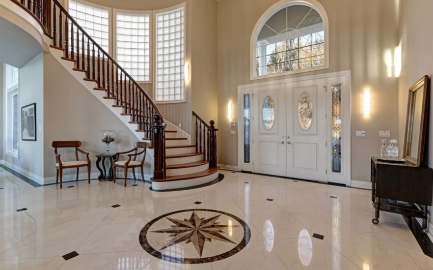 La décoration transparente de la porte d'entrée en verre révélera légèrement les avantages de la solution intérieure des pièces