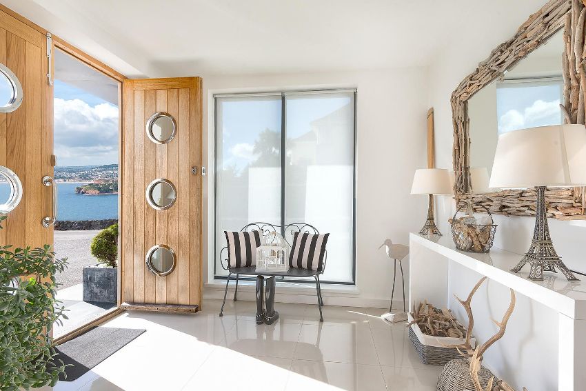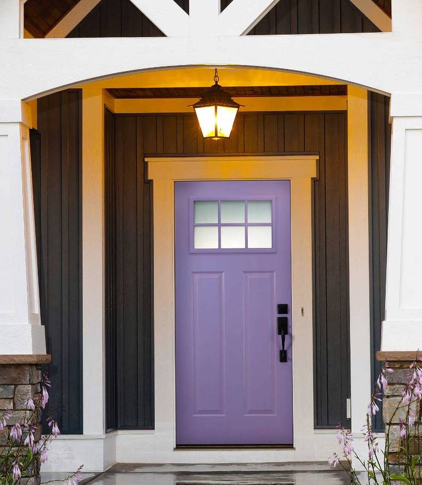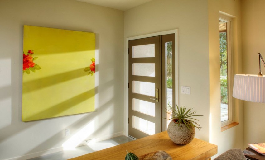 Une porte d'entrée vitrée est installée si un éclairage naturel supplémentaire est nécessaire ou un contact visuel avec le visiteur
