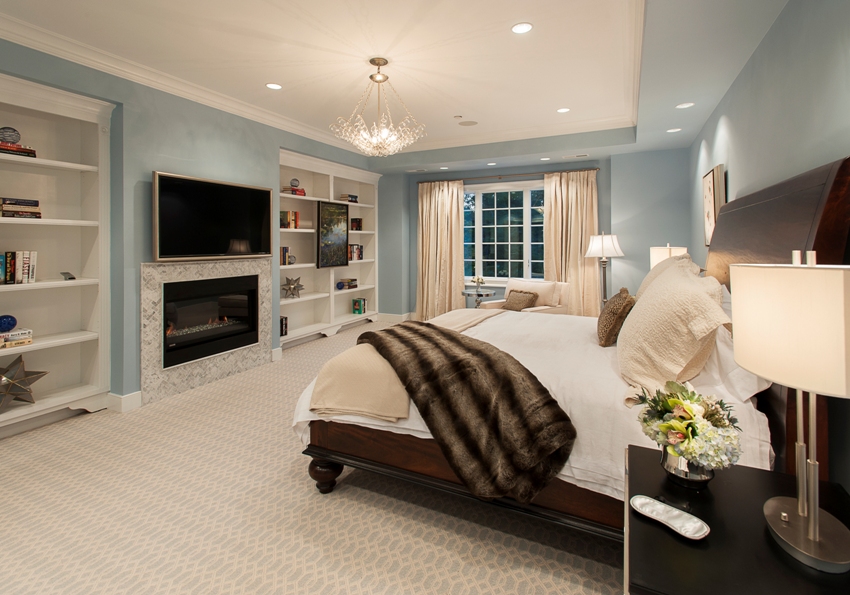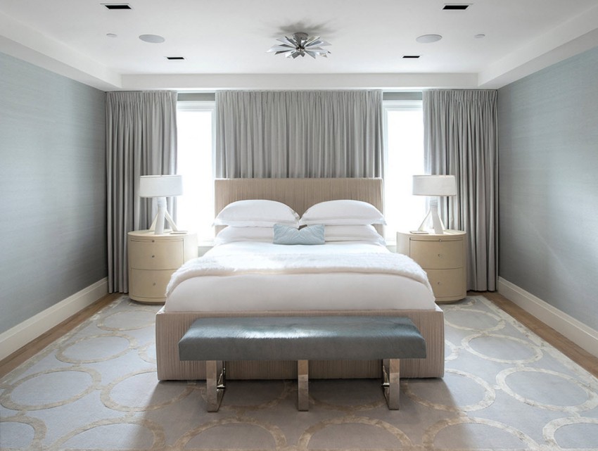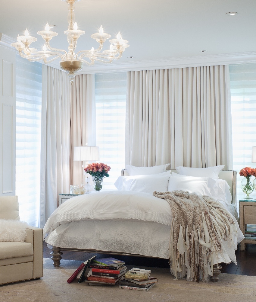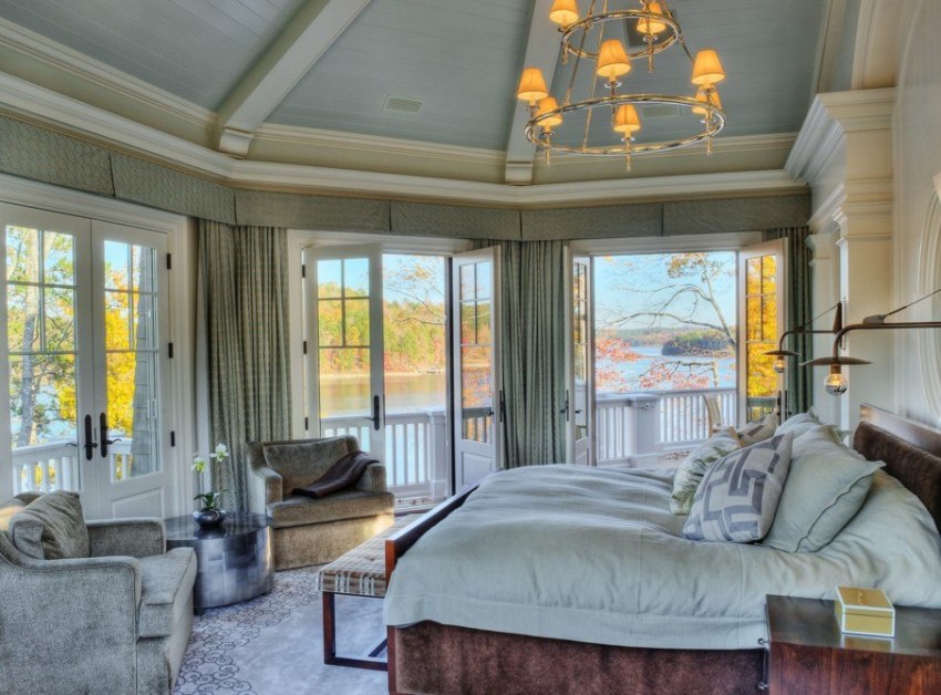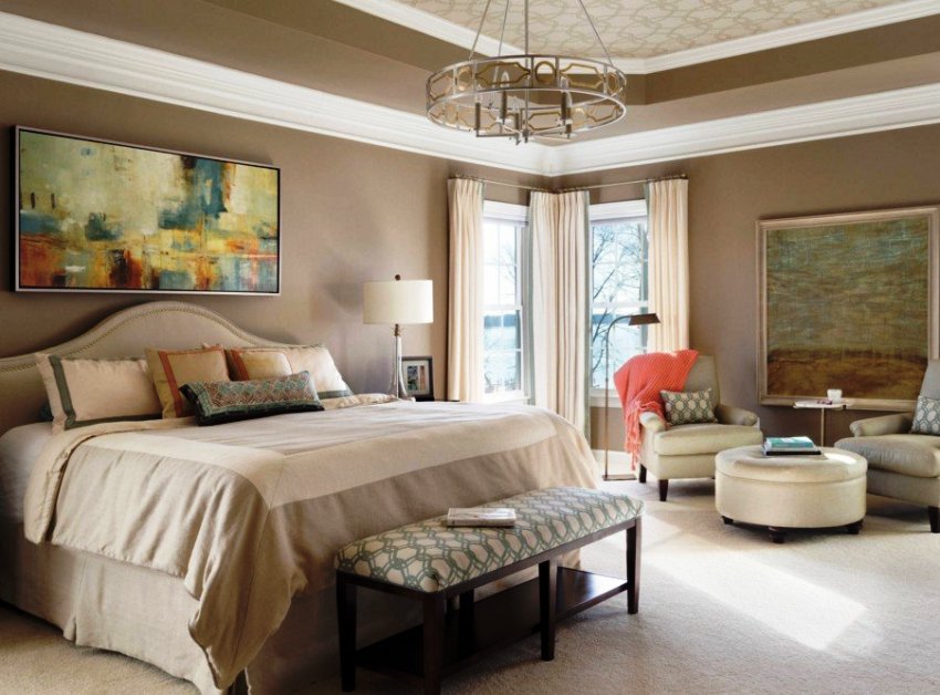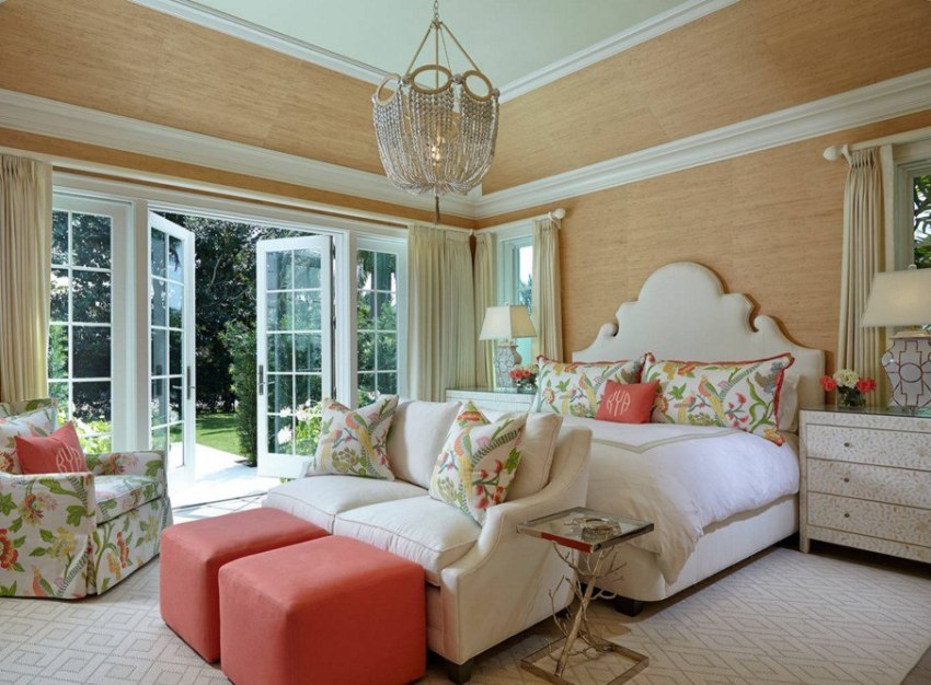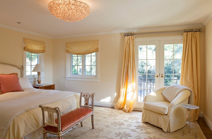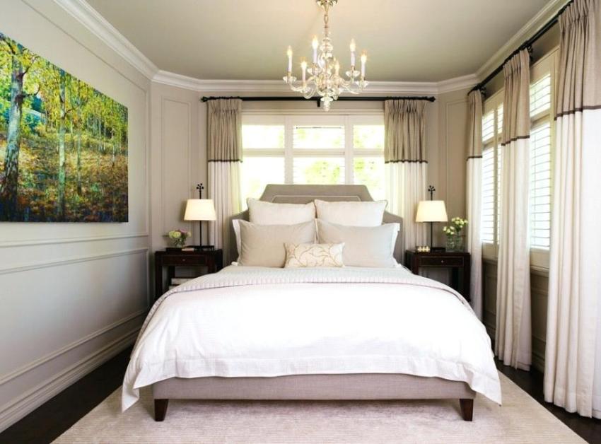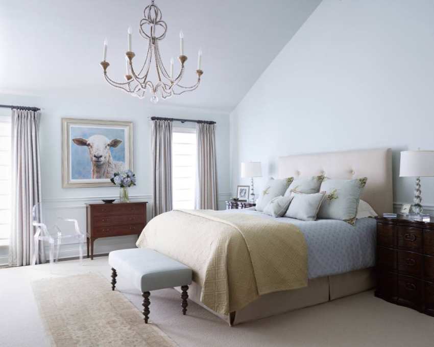 Funkcjonalne przeznaczenie głównej lampy do spania - żyrandoli - jest niejednoznaczne. Może to być opcja, gdy potrzebne jest przytłumione, miękkie i rozproszone światło. W takich wnętrzach obszary, które wymagają jaśniejszego oświetlenia, uzupełniają inne urządzenia.