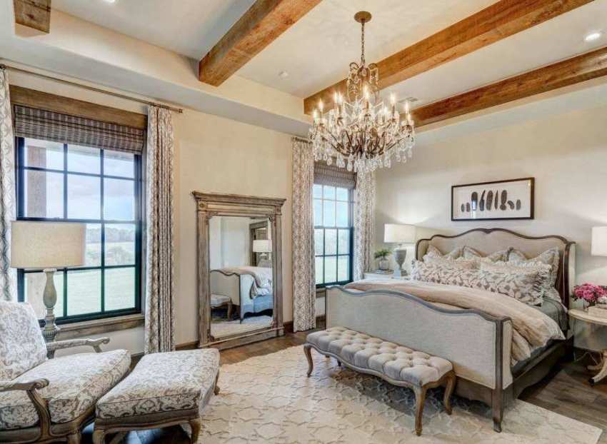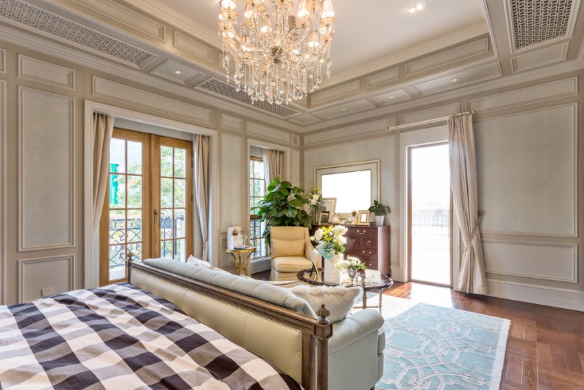 Żyrandol sufitowy w sypialni w klasycznym stylu