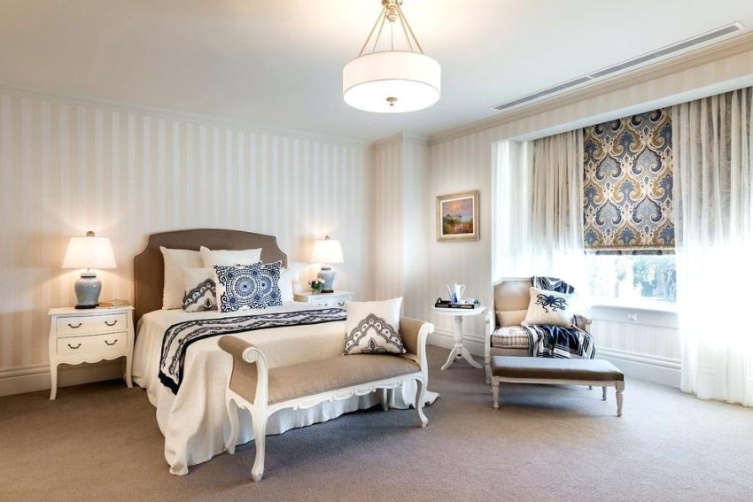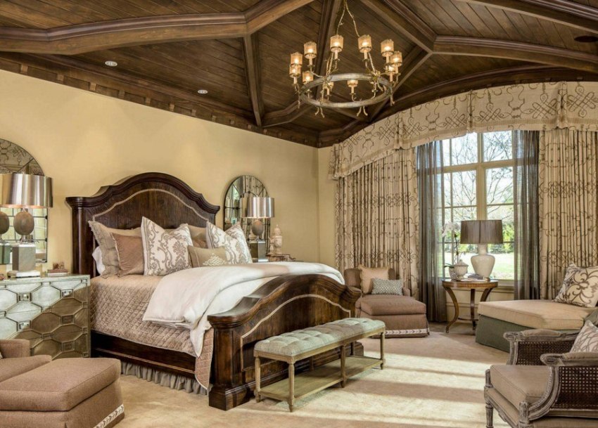 W przypadku dużych pomieszczeń częściej wybierany jest klasyczny styl wnętrza. Jeśli parametry pomieszczenia są skromne, lampę sufitową lepiej zawiesić w sypialni, która ma niski montaż. Obecność złoceń, elementów dekoracyjnych w projektowaniu opraw oświetleniowych czy zastosowanie lamp w postaci świec podkreśli stylistyczną oryginalność. Nadaje się do klasycznych sypialni i lamp z abażurami z tkaniny. Materiał powinien mieć ciekawą powierzchnię i wzór pasujący do ogólnego stylu.