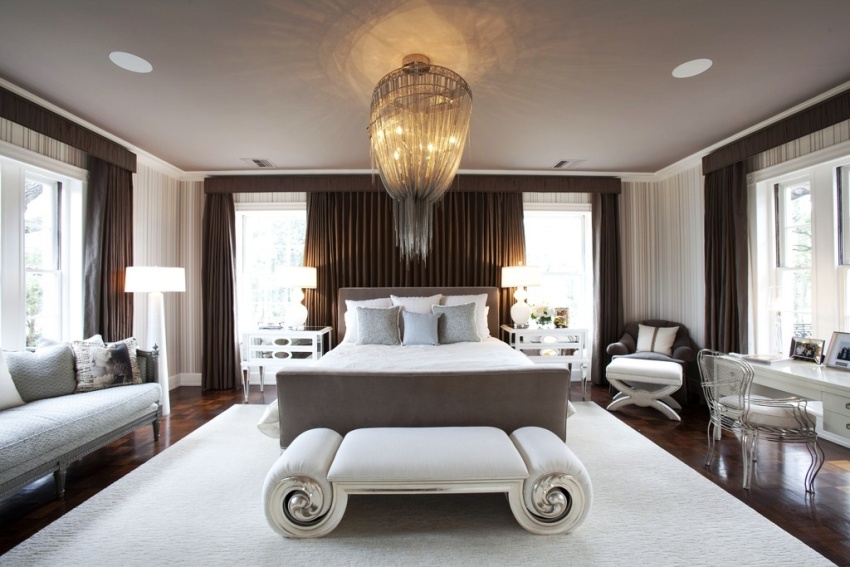 Nowoczesne żyrandole w sypialni: zdjęcia modnych modeli